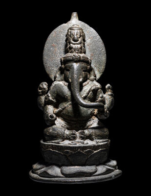 the first a Javanese figure of Ganesha, the second an Indonesian elephant-form final.