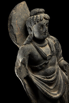 A Gandharan Grey Schist Figure of Maitreya
