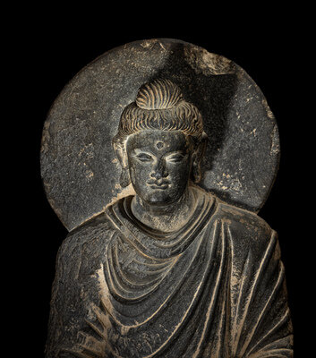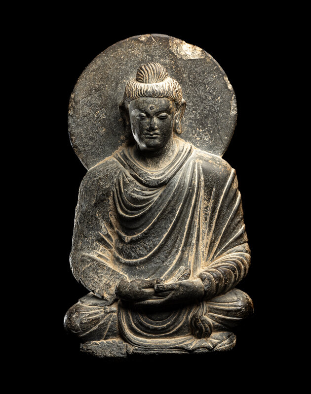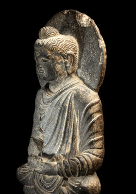 A Gandharan Grey Schist Figure of Seated Buddha