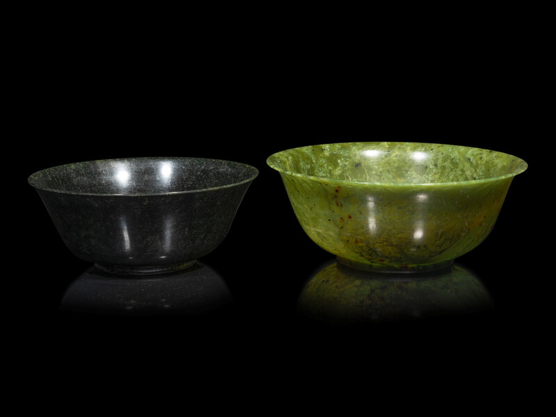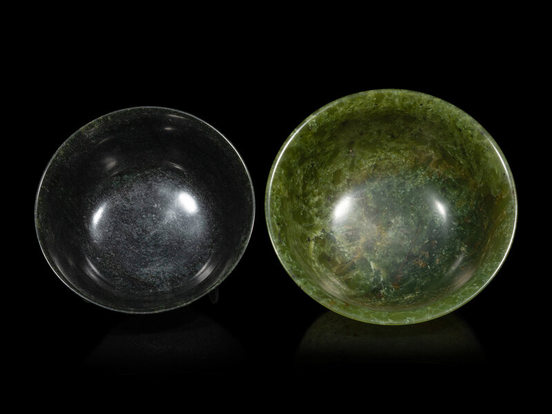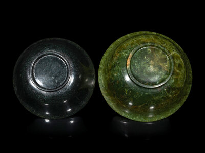 Two Chinese Spinach Jade Bowls