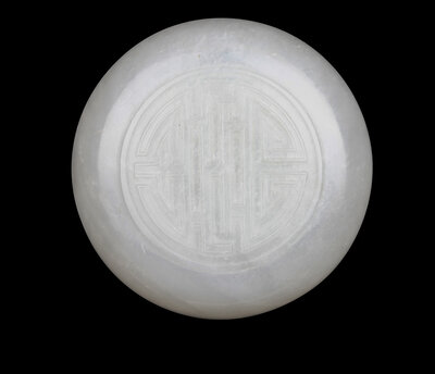 A Chinese Greyish Celadon Jade Water Coupe And A White Jade Cover