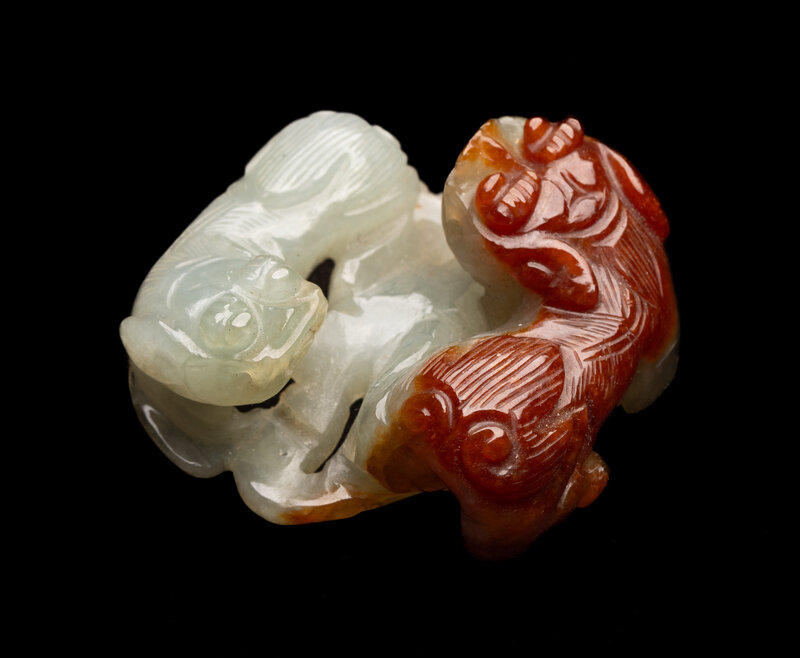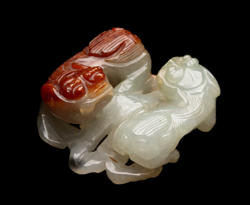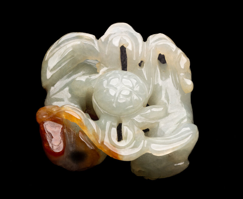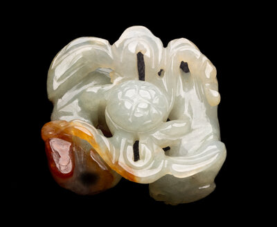 A Chinese Russet and Pale Celadon Jadeite Carving