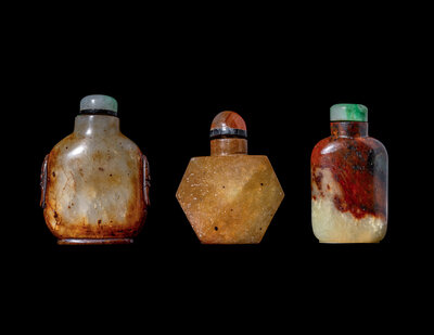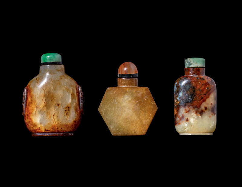comprising a rounded rectangular example, a flask-form example with a pair of lion masks and a faceted example.