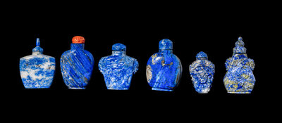 Six Chinese Carved Lapis Lazuli Snuff Bottles
