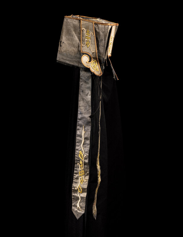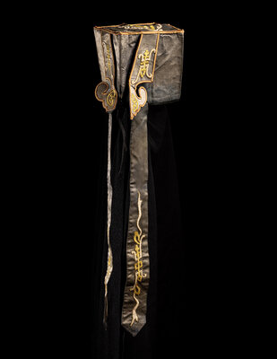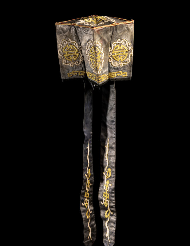 of lozenge form, embroidered with shou roundels and longevity characters.
