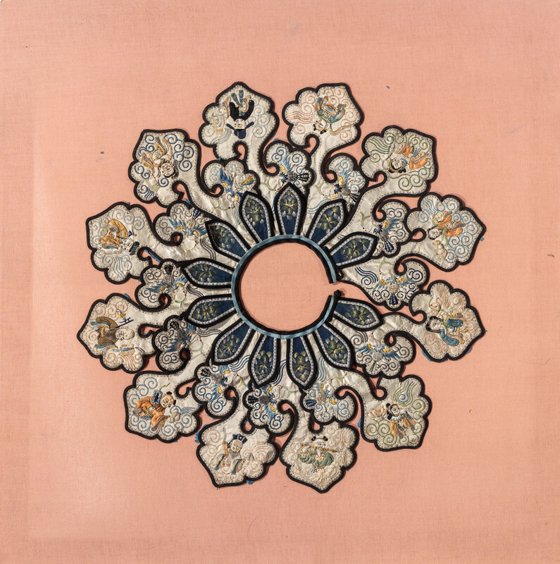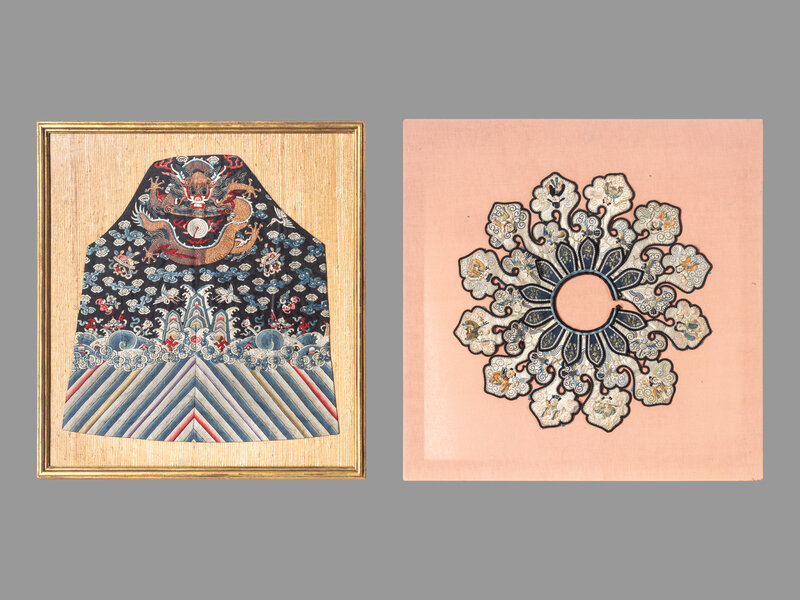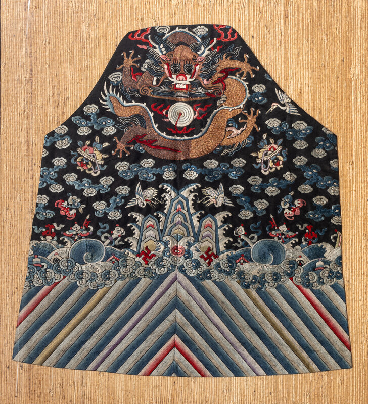 comprising a cloud collar and a blue ground dragon robe fragment.