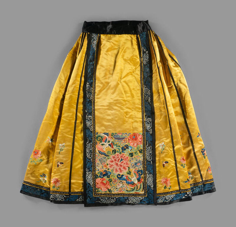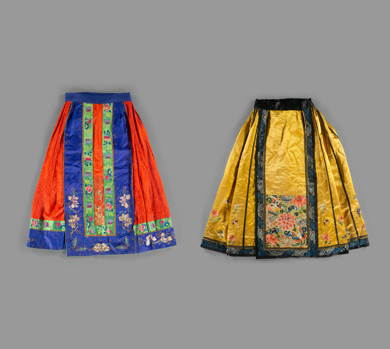 Two Chinese Embroidered Silk Skirts