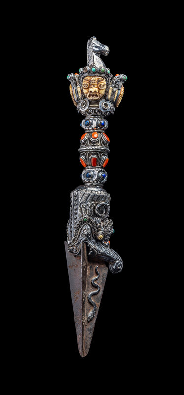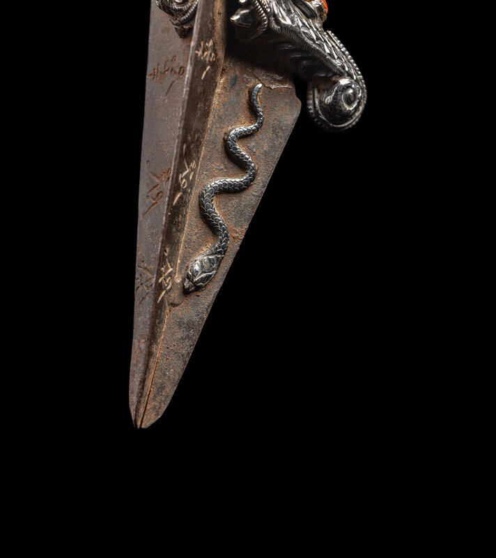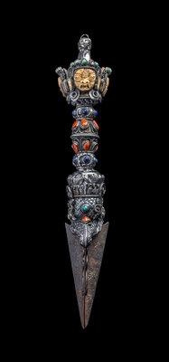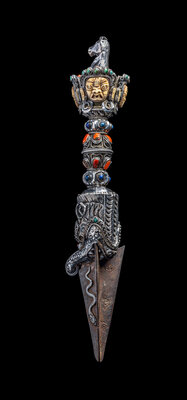 A Tibetan Hardstone Inset Silver Vajra