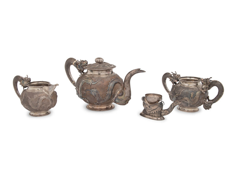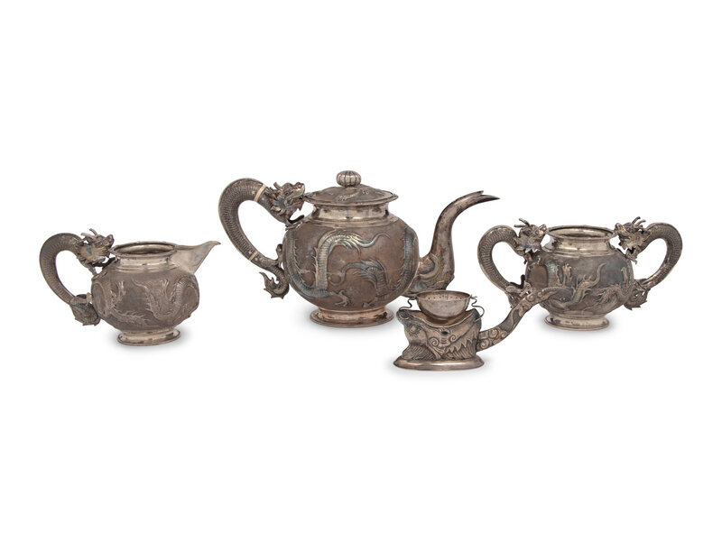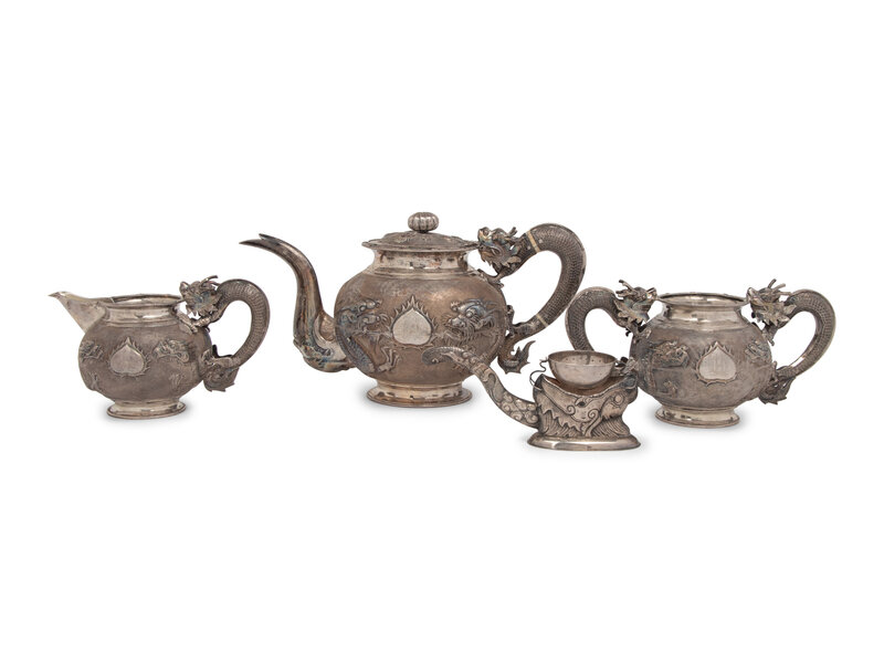 Four Chinese and Vietnamese Export Silver Tea Wares