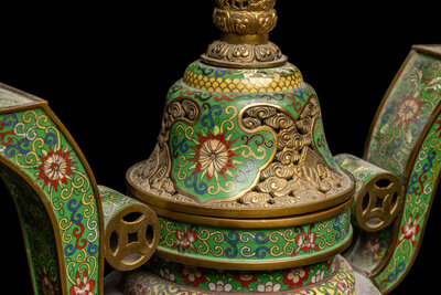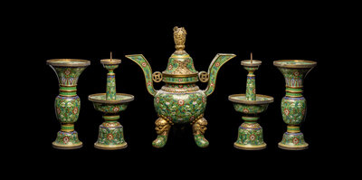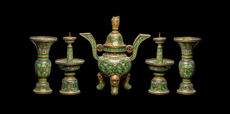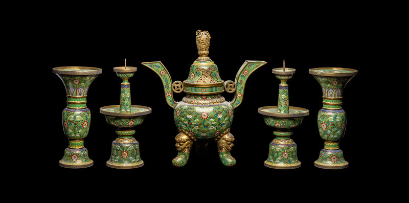 A Chinese Five-Piece Cloisonné Enamel Altar Set