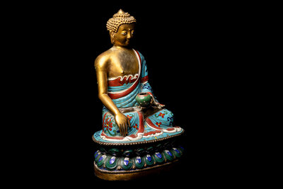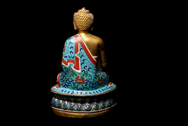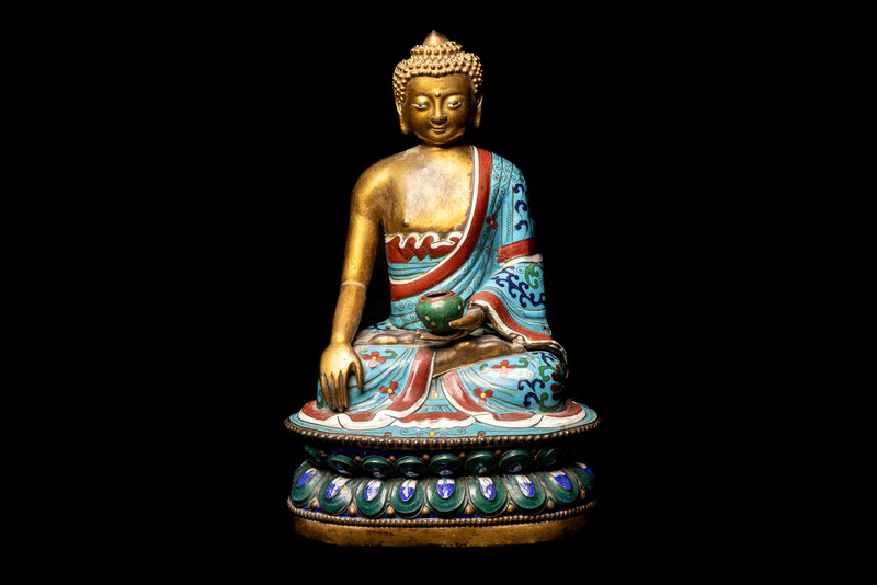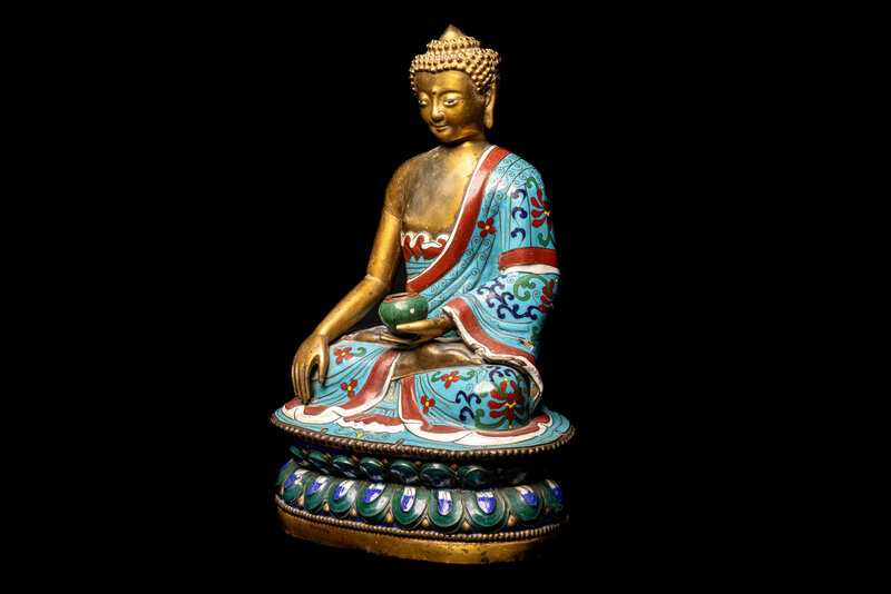 The statue posed in Bhumisparsha mudra, holding a bowl in left hand, underside sealed