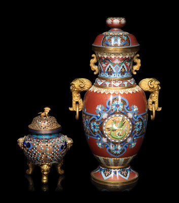Two Chinese Cloisonné Enamel Covered Vessels