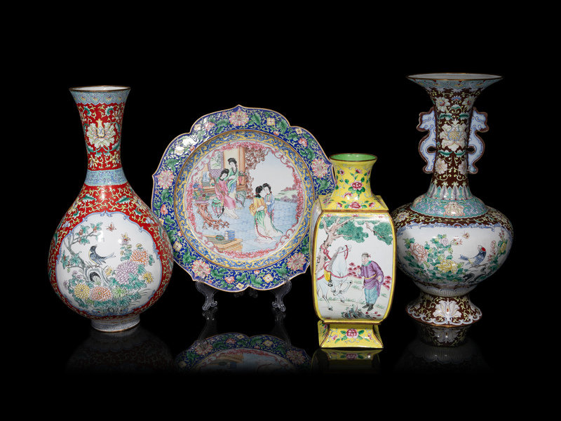 Four Chinese Canton Enamel Vessels