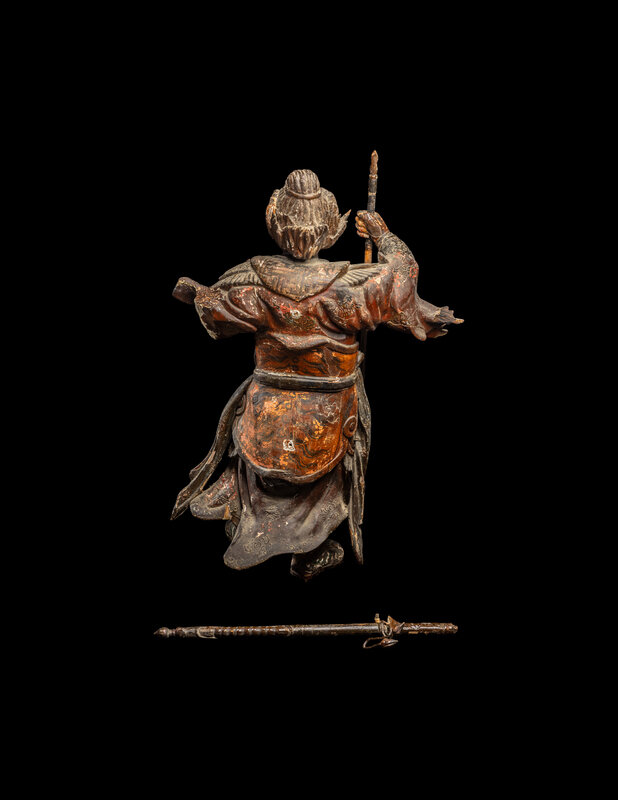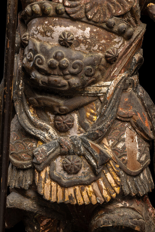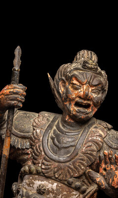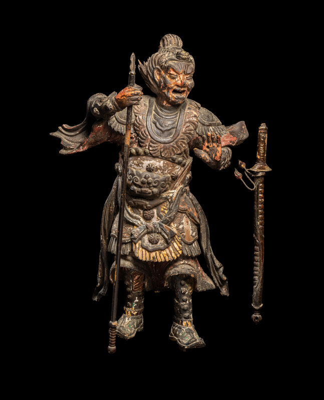 A Japanese Polychrome Painted Wood Figure of a Guardian