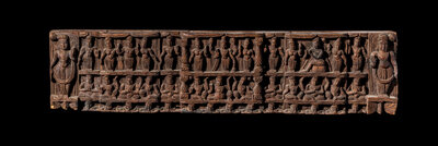 of rectangular form, carved in relief with various deities.