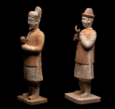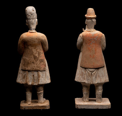 A Pair of Chinese Painted Pottery Figures of Attendants