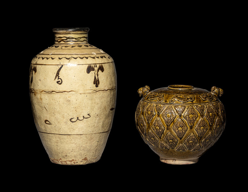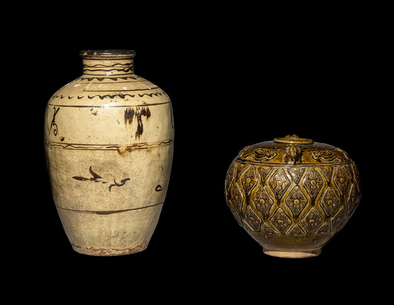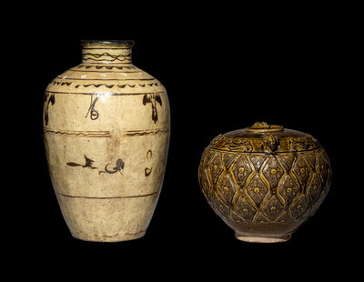 the first a brown glazed molded jar, the second a cizhou storage jar.