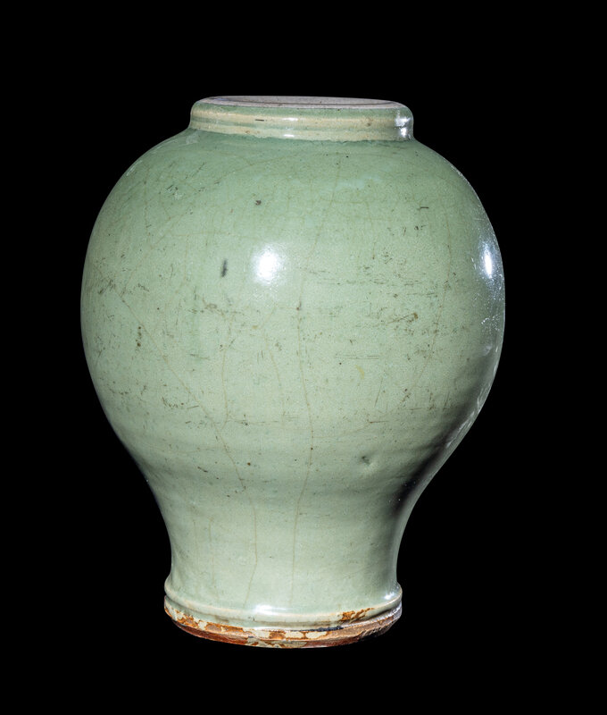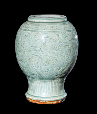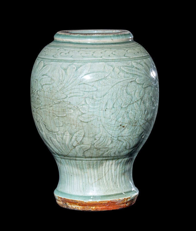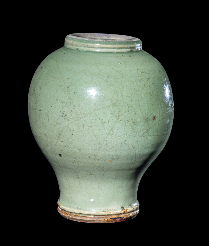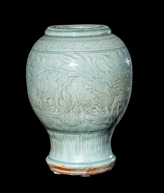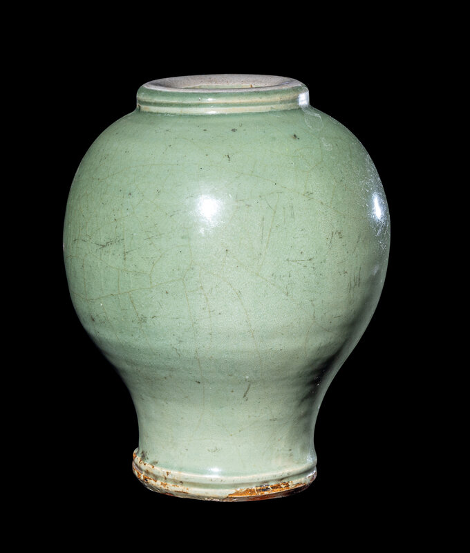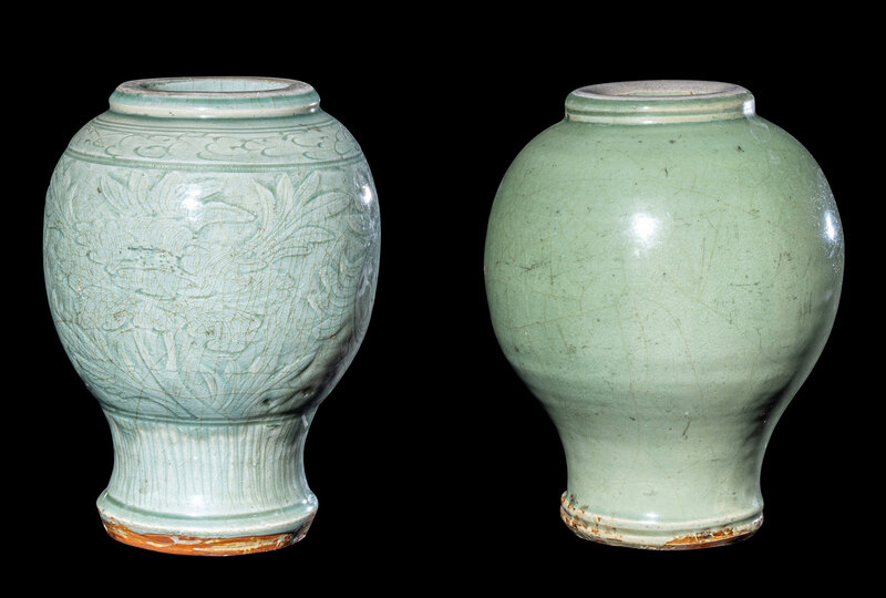 Two Chinese Longquan Celadon Glazed Porcelain Vases