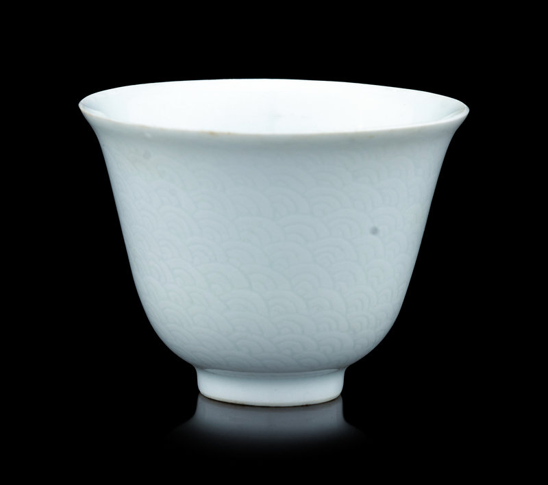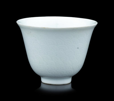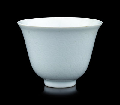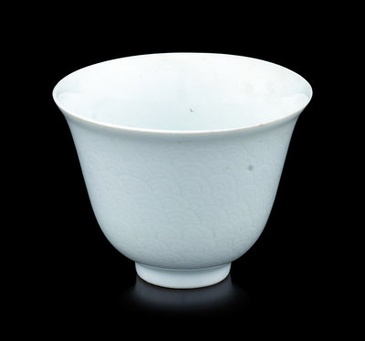 A Chinese Incised White Glazed Porcelain 'Waves' Cup