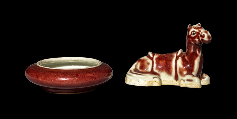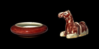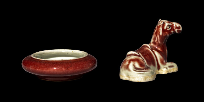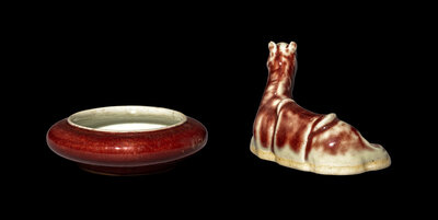 Two Chinese Copper Red Glazed Porcelain Scholar's Objects