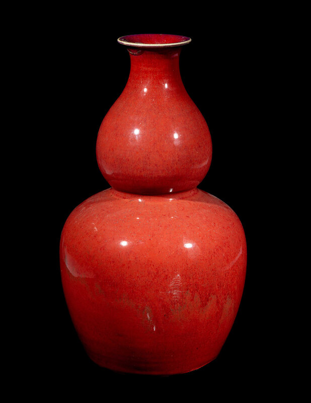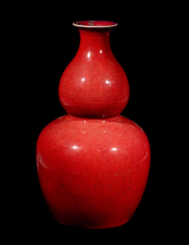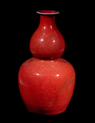 A Chinese Sang-de-Boeuf Glazed Porcelain Gourd-Form Vase