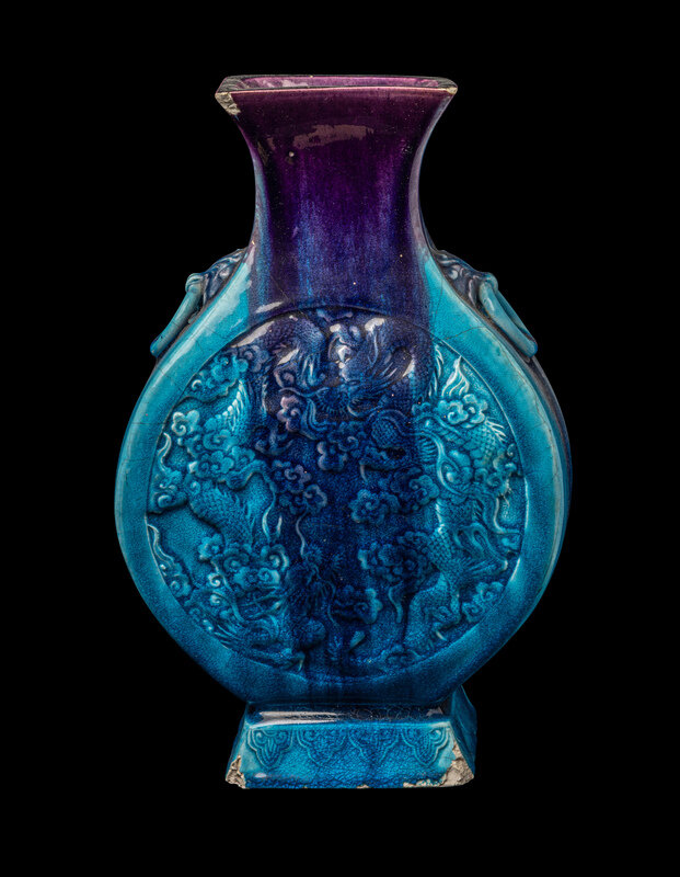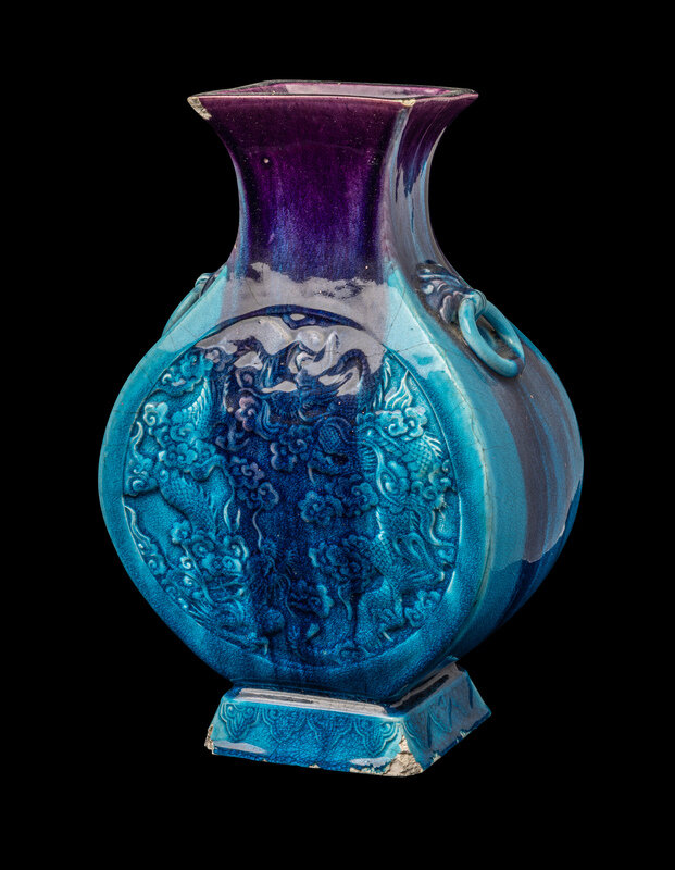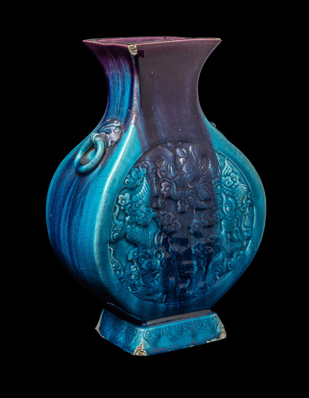 A Chinese Molded Flambe Glazed Porcelain Hu Vase
