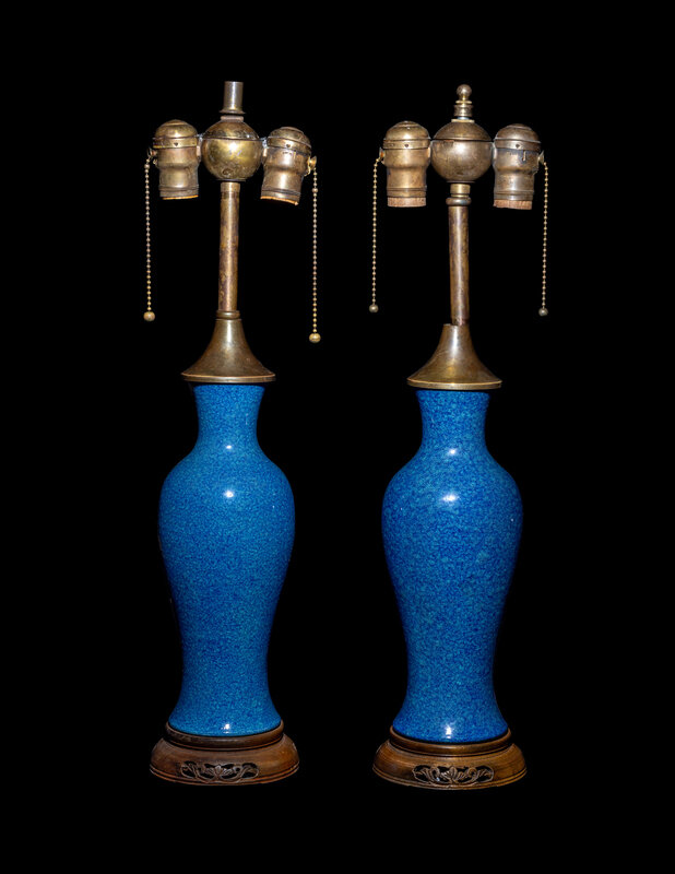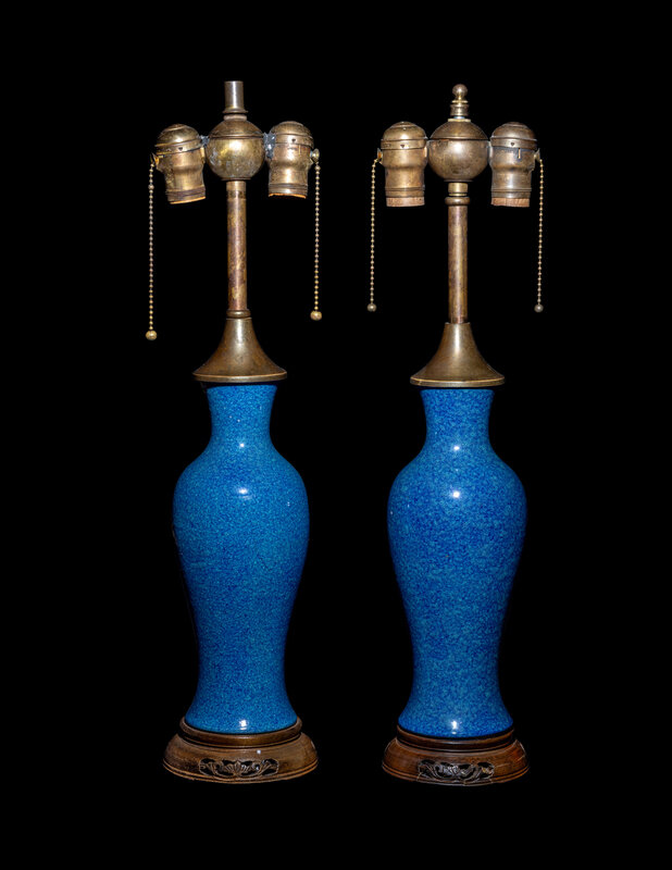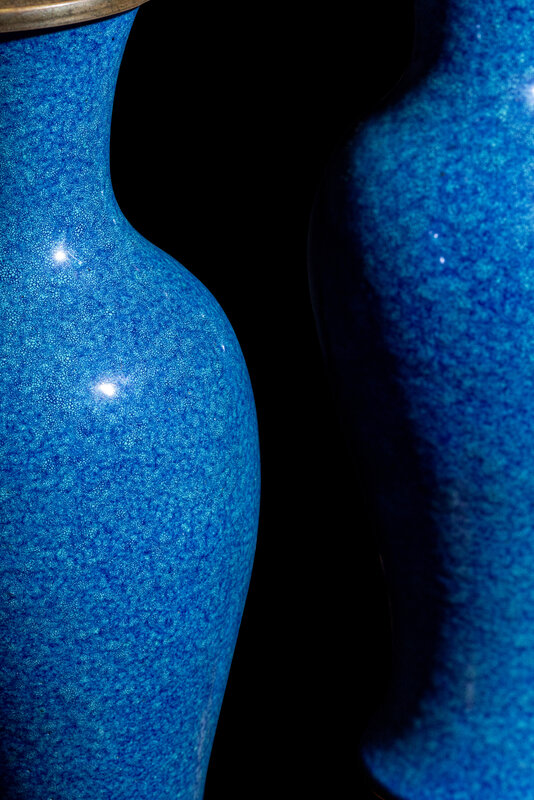 A Pair of Chinese Powder Blue Glazed Porcelain Vases