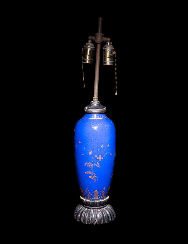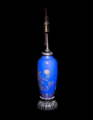 A Chinese Gilt Decorated Powder Blue Glazed Porcelain Vase