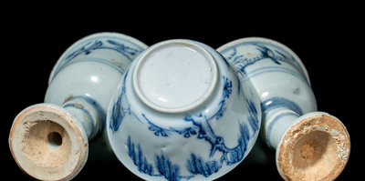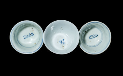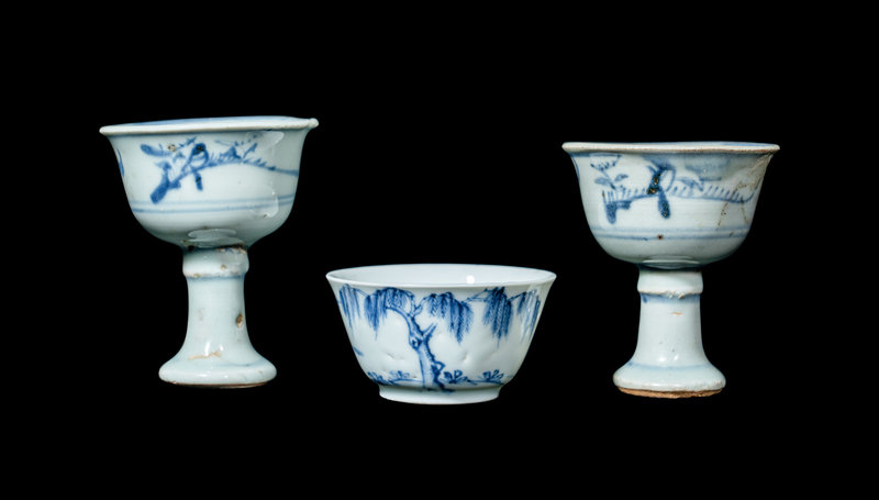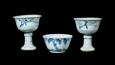 comprising two Ming dynasty stem cups and a Qing dynasty teacup.