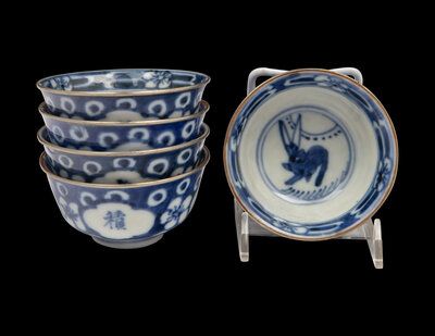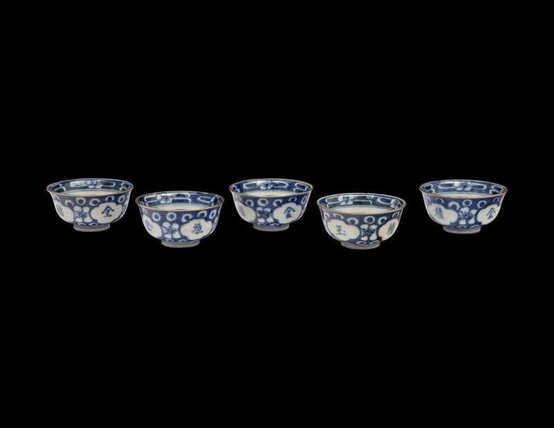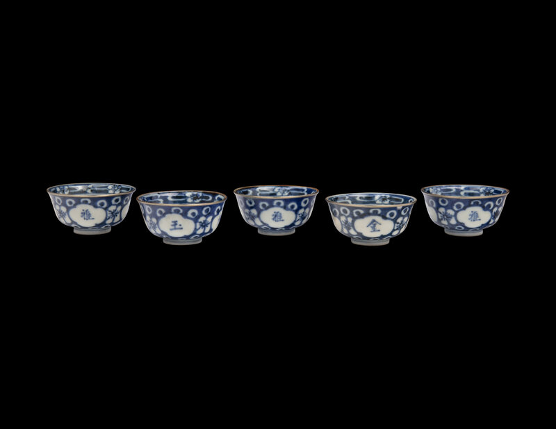 A Set of Five Chinese Export Blue and White Porcelain Cups
