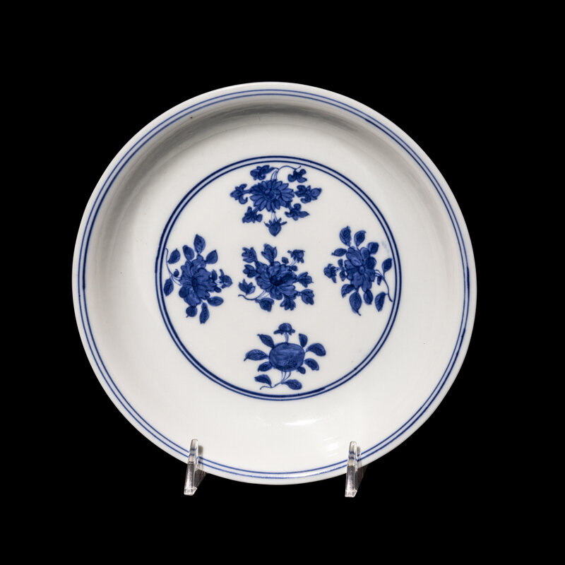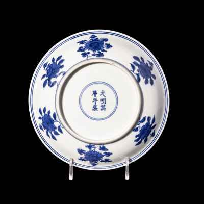 decorated with floral sprigs, the underside bearing an apocryphal Wanli six-character mark in underglaze blue.