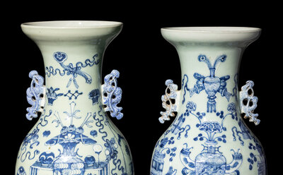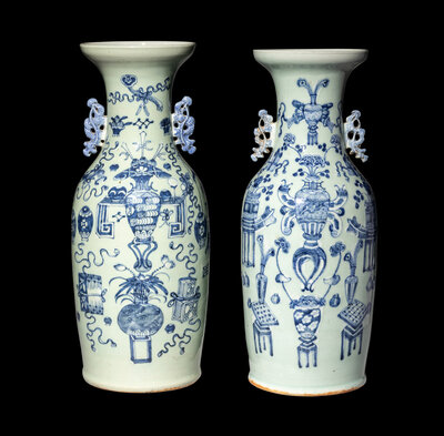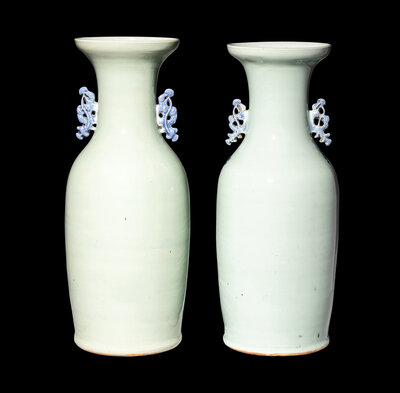 A Pair of Chinese Celadon Ground Blue and White Porcelain Vases
