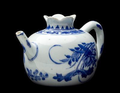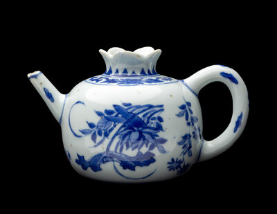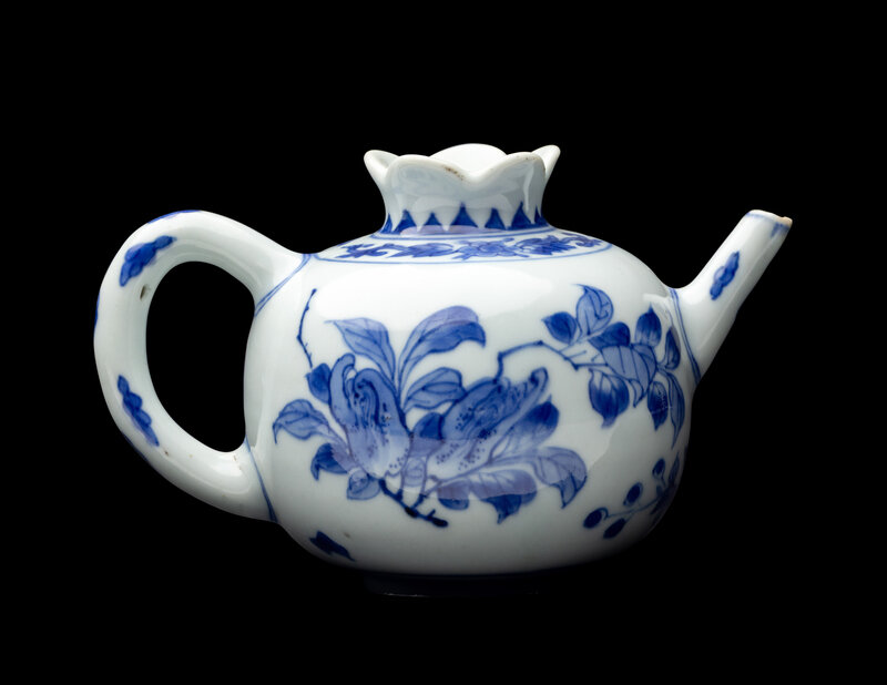 A Chinese Export Blue and White Porcelain Pomegranate-Form Teapot