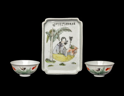 Three Chinese Qianjiang Decorated Porcelain Wares