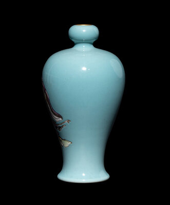 A Chinese Blue Ground Famille Rose Porcelain Meiping Vase
