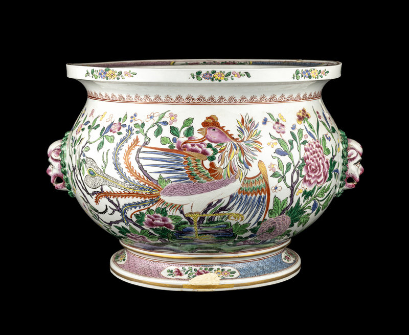 painted with flowers and phoenixes on the exterior, fishes and seaweeds in the interior wall.