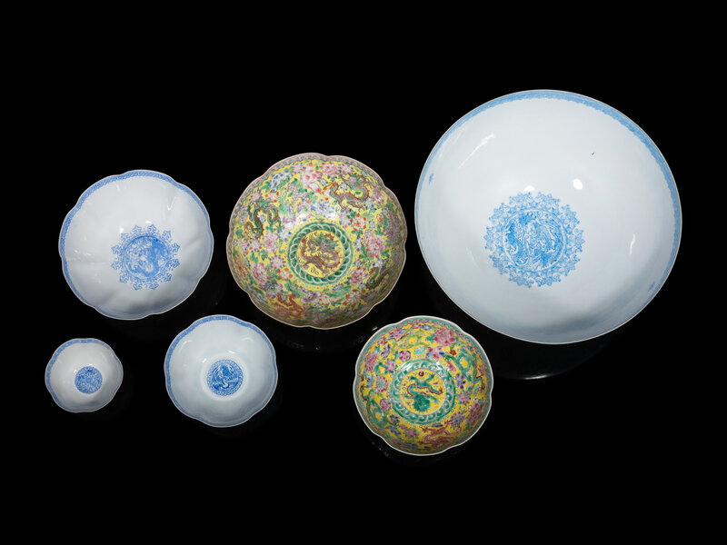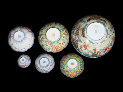 A Set of Six Chinese Famille Rose Eggshell Porcelain Bowls