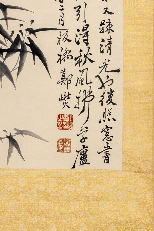 signed and inscribed, date lunar year yiyou (1765), with two artist seals, Zheng Xie zhi yin, and one other.