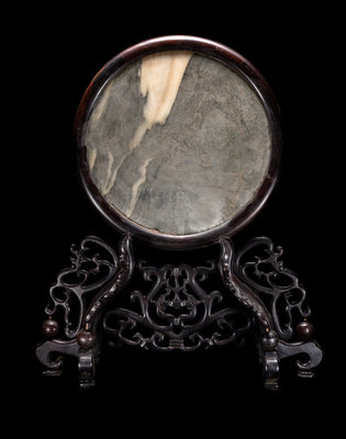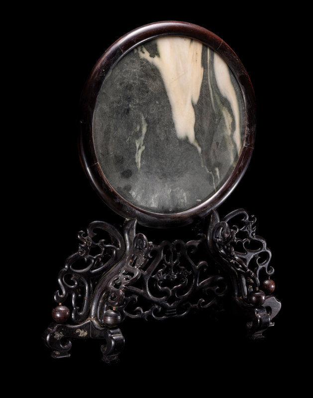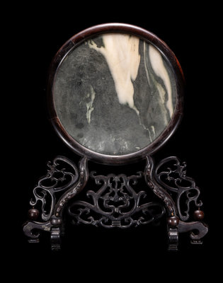 A Marble Inset Hardwood Table Screen