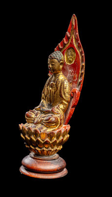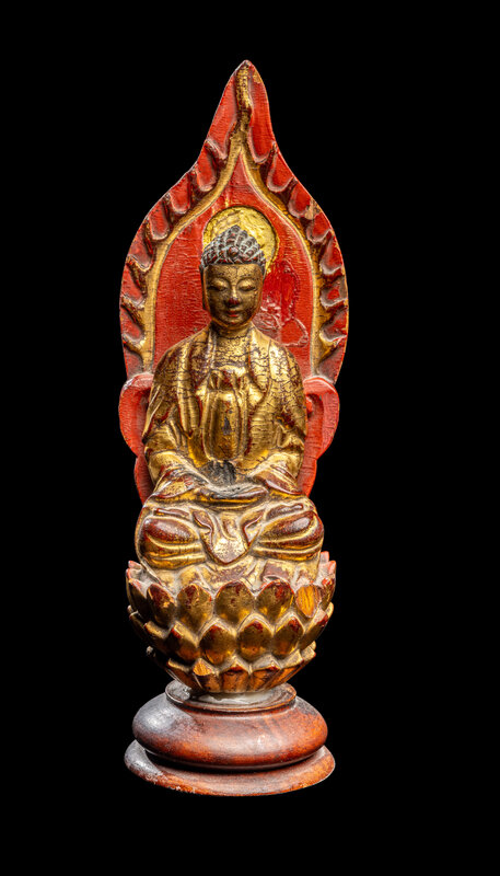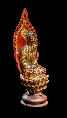 A Gilt and Red Lacquered Wood Figure of Buddha