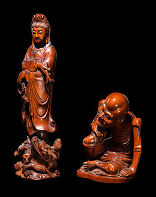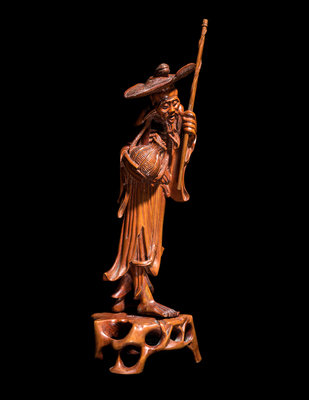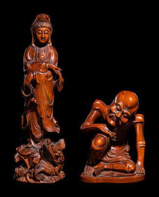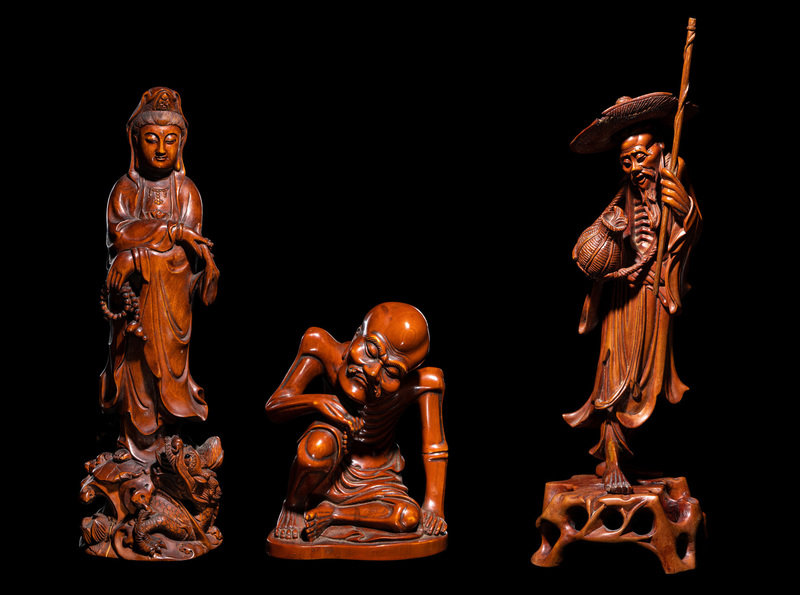 the first a fisherman, the second a Guanyin, the third a crouched man.