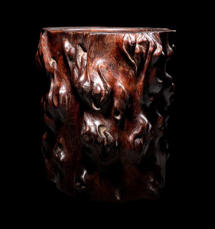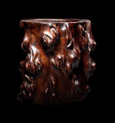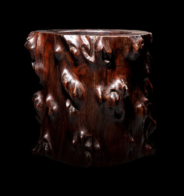 A Chinese Tree Trunk-Form Hardwood Brushpot