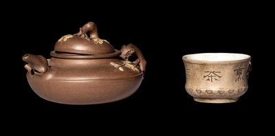 Two Chinese Yixing Zisha Pottery Tea Wares
