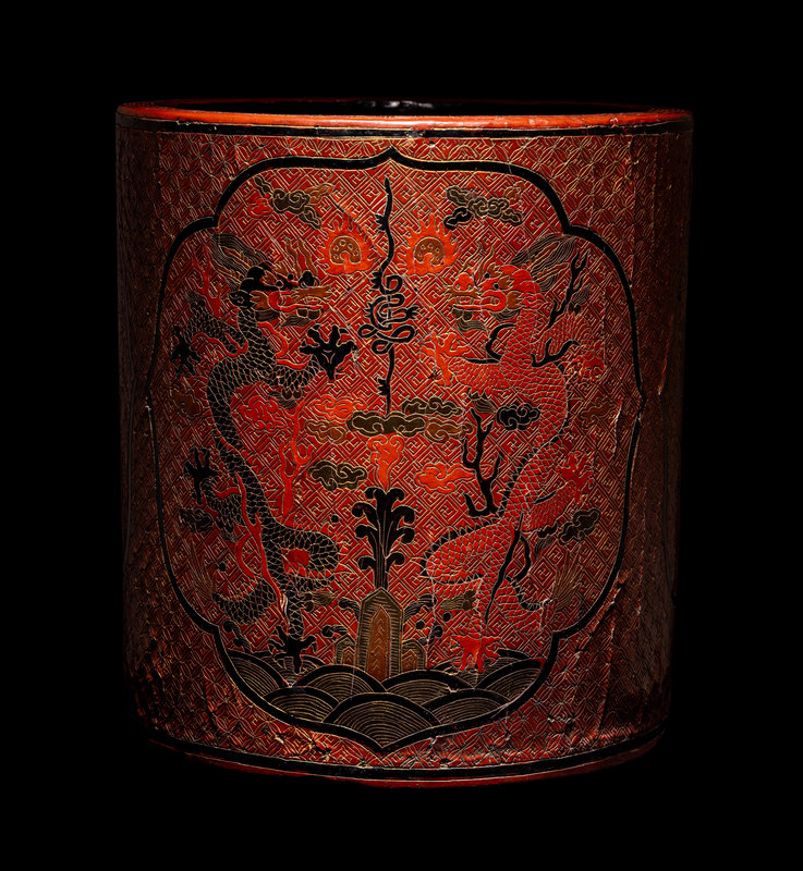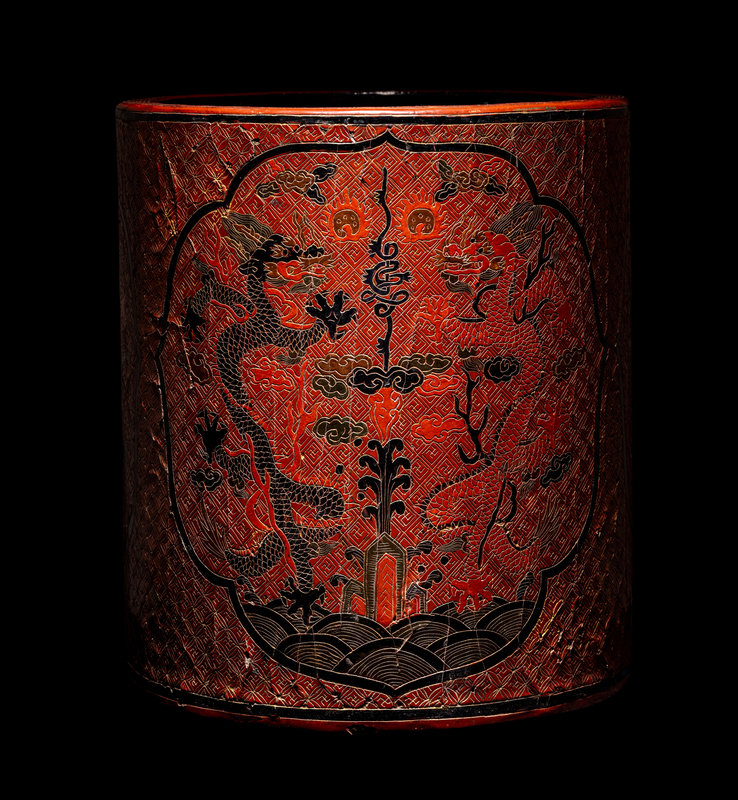 A Chinese Tianqi Red Lacquer Brushpot, Bitong