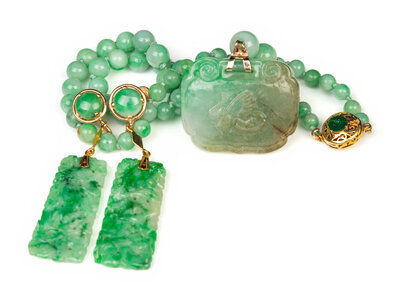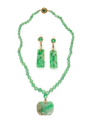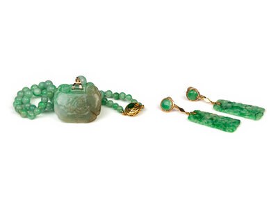 the first a jadeite necklace, the second a pair of earrings.