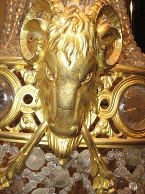 With rams head masks and foliate garlands.