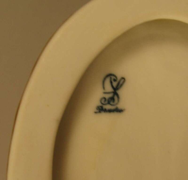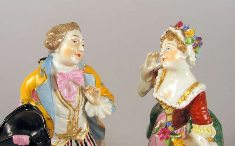 Depicting an amorous 18th century clad gentleman and lady, marks to underside.