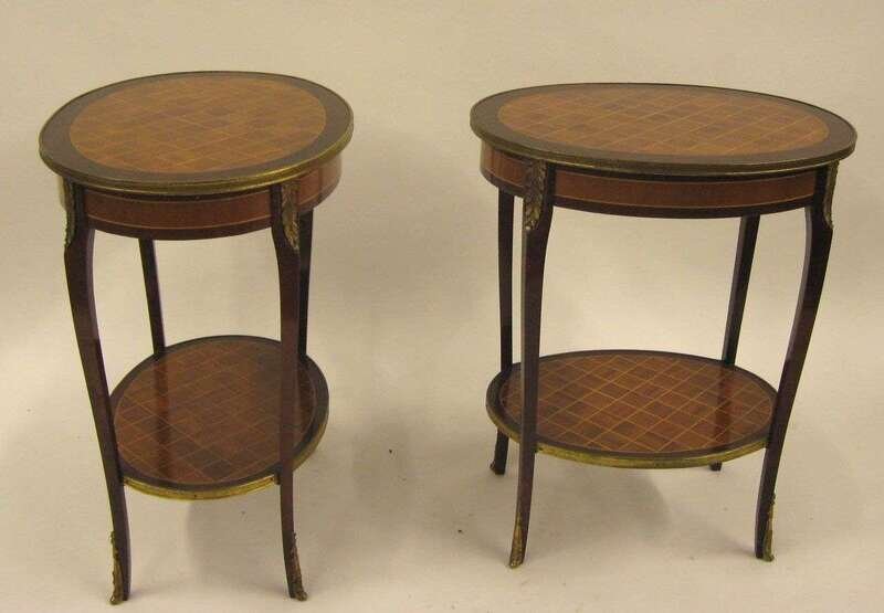 Pair of Transitional style gilt metal mounted mahogany & parquetry side tables