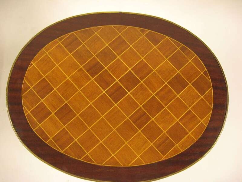 The oval checkerboard raised on cabriole legs joined by an undertier and ending in sabot. (2).