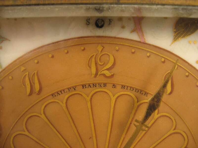 Gilt metal and porcelain mantle clock bailey banks & biddle, philadelphia